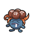 Gloom, thankfully, dials up the intrigue quite a few notches. Its body plan is largely the same, but the leaves have turned an autumny red-brown, looking a bit wilted, and also it now has a flower atop its head, one that, even in its more abstract form, resembles the rafflesia flower a whole lot more than Venusaur's flower does, just with bulb-shaped petals.