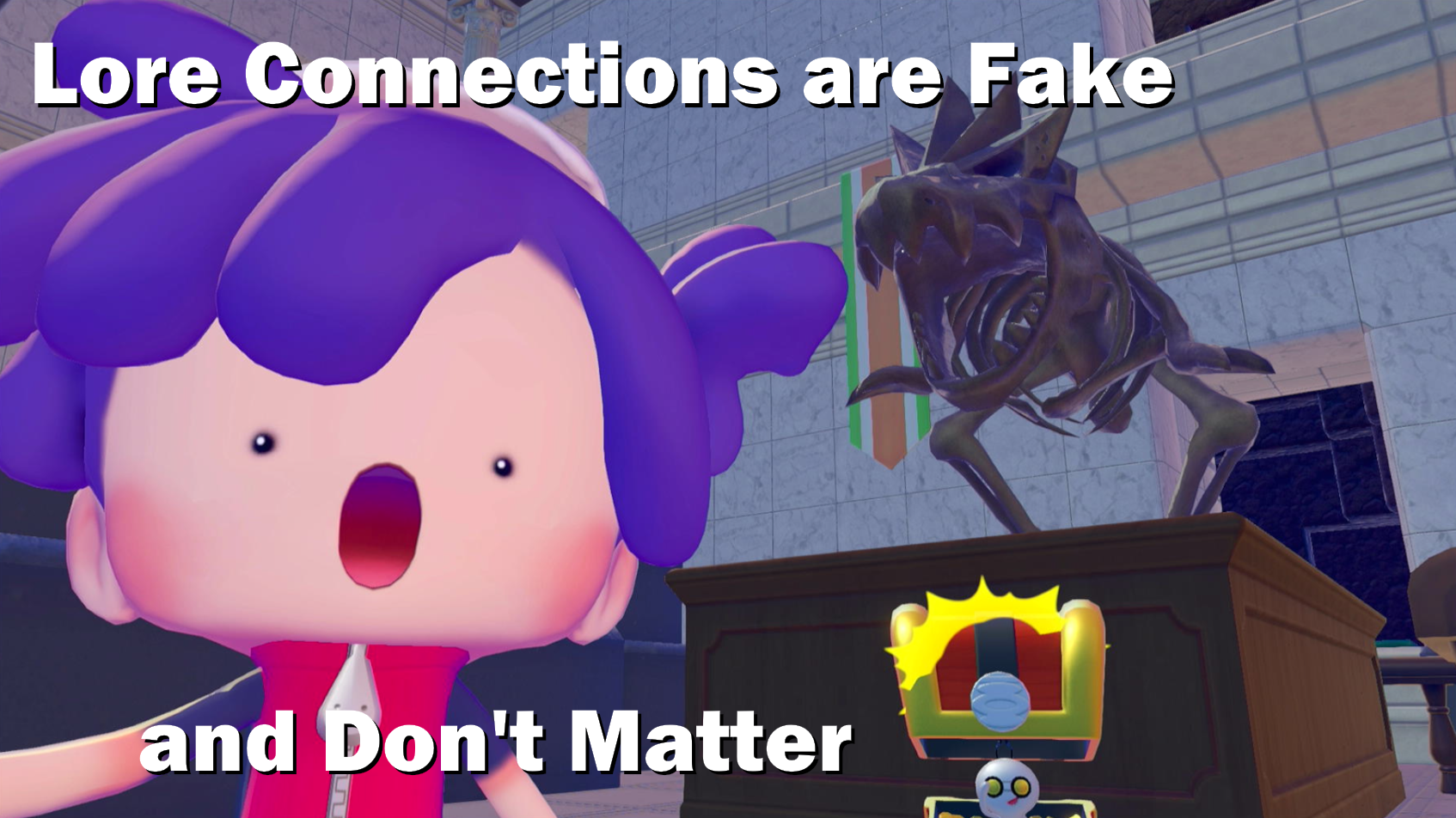 It kind of makes me appreciate how often Pokemon will just leave large threads hanging and leading to nowhere. What exactly are Ultra Beasts or Paradox Pokemon? Maybe Gamefreak themselves don't even know for certain, and just left it open to interpretation. At most, a shrug and saying "this is what they might be, but who knows for sure." Maybe an acknowledgement that a wild imagination is gonna come up with a better answer to these questions than a simple bullet point in a trivia segment ever could. Though of course I do retract this statement if they ever do go out of their way to answer what these Pokemon are, in the future.