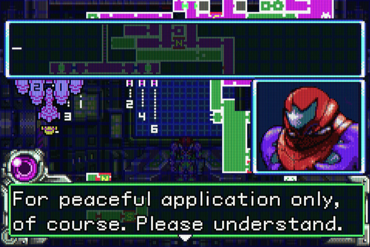 Either way, SA-X pales in comparison to the game's true antagonist, the Federation itself. Which feels like a bold move given this is among the first games to really cement the modern conception of the Galactic Federation. The GF has been around since the beginning, obviously, but they've always been a background element or framing device that gives Samus a mission to do and little else. Here, they're very much the focal point for the first time, which only solidifies them as the "human" faction in a wider galactic civilization, a conception of them that'll remain consistent for the remainder of the series at this point.