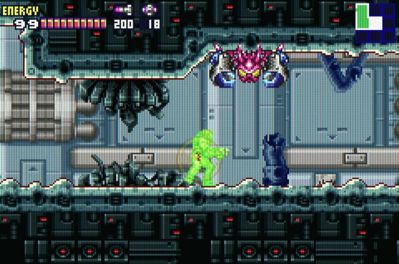This point is just especially bothersome because to me cause it really does feel like this Metroid is the best set up to be a straight-simple speedrun game, except I would also like to collect all the items while also going fast. But then this victory lap around the station happens and it just makes things a bit of a pain. I'll still do a lap but then it turns out I missed a Power Bomb somewhere and at that point I don't wanna run around trying to remember where I missed something. Which is a sentiment I feel like I shouldn't be having in a genre where the whole point is collecting stuff. Maybe it's just because I've replayed Super and Prime 1 so many times that having a decently satisfactory route through the game is somewhat effortless to me, but I dunno. 100% collection is usually its own reward to me but bluh. Bluhhh.