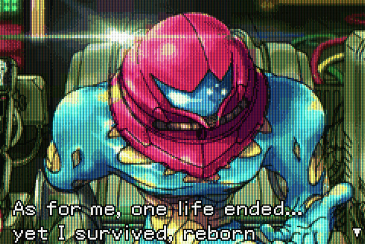 It definitely feels more than deliberate that a lot of this game is older elements from the series coming back to haunt Samus now that she's in the most vulnerable state she's been in, which in and of itself feels like a thematic follow-up to Samus' actions on her previous SR-388 adventure in Metroid 2. Had she not gone through with making all but a single Metroid, the natural predators of the X Parasites, extinct, this is very much her previous actions coming back to bite her as hard as possible. But also in turn, her mercy toward the Metroid hatchling coming back to save her when an X parasite would have ended up just assimilating her.