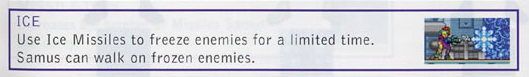 With this, Missiles can now be charged like a beam, and if fired after being fully charged, will release a huge AoE attack that freezes everything. A neat idea! Not used for much, especially not in any mandatory room.