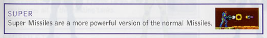 Instead of being a distinct type of shot with its own ammo type, Super Missiles are now a straight upgrade on your base missiles, tripling their damage. Maybe the dynamic is less interesting this way, but it's probably best just given the GBA's limited button count.